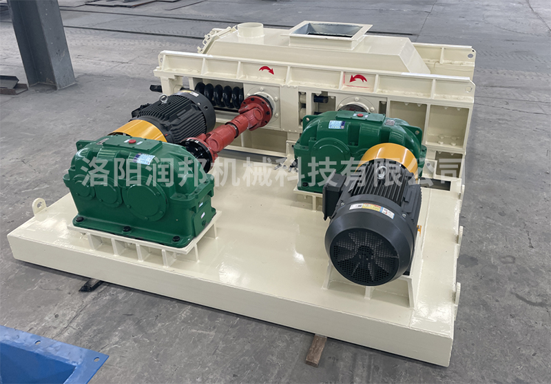 電機(jī)通過聯(lián)軸器、減速機(jī)減速,通過聯(lián)軸器分別帶動(dòng)固定輥部和活動(dòng)輥部轉(zhuǎn)動(dòng)工作,機(jī)架部起主、被動(dòng)輥部支承作用。被破碎的物料經(jīng)機(jī)架部進(jìn)入兩輥的空間內(nèi),使物料受擠壓、研磨而被破碎,經(jīng)機(jī)架下部排出機(jī)體。